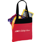 The Deluxe Convention Tote has an open main compartment with reinforced double 21 inch handles. It's great for conventions, meetings and tradeshows.