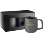 Includes 2 Sienna ceramic mugs 1626-41. Ceramic mug with smooth, matte outer wall and gray colored, high-gloss inner wall. Choose between color imprinting or our cutting edge, dishwasher safe laser decorating method. Leed's Exclusive 14oz. Gift Box is not decorated.
