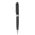 Exclusive The Brass Co® design. Inspired by on-trend bold prints, the Statement ballpoint features a matte black silhouette starkly contrasted by a laser etched geometric print in shiny chrome. Shiny chrome accents complete the look. Pen includes premium blue German ballpoint ink cartridge.