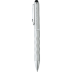 Streamline your business travelling with the elleven™ Traverse collection. Incredibly unique design features a high gloss barrel with an intricate, 3D geometric cut bottom barrel. You have to feel the barrel! Soft rubber stylus ideal for most mobile devices, including the iPad and iPhone. Twist action mechanism. Includes premium black ballpoint ink cartridge. Laser 360 is available on this style.