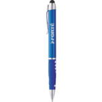 High gloss upper barrel with rubberized grip. Pen includes premium black ballpoint ink cartridge and stylus tip. Rubberized stylus tip is ideal for touch screens, including iPhones and iPads, as well as retail payment pads. Laser 360 is available on this style.