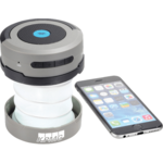 Pop up this LED Bluetooth speaker lantern in a flash and stream audio from your Bluetooth enabled devices from anywhere. This lantern can be taken with you on the road, used for outdoor events or kept in your home for enjoyment. With the built in microphone, you can conference call on-the-go through your smartphone. Push on/off button for flashlight. Includes USB recharging cable.