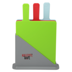 The 3 Piece Cutting Board Set with Holder is the perfect trio of cutting boards. Each board has a picture on the handle to show what type of food it should be used for to avoid cross contamination while cooking. FDA complaint.