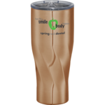 Do not miss the most trendy tumbler of the year. Durable, double-wall stainless steel vacuum construction with copper insulation, which allows your beverage to stay cold for 24 hours and at least 8 hours for hot beverages. The construction also prevents condensation on the outside of the tumbler. Push-on two piece lid with Tritan™ swivel anti-spill closure, pinch the 2 axis joints slightly to remove the top part of the lid for easy cleaning. Wide opening for comfortable filling and pouring. Design features the spinning, geometric bottom. Leed's Exclusive. 30oz.