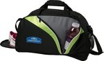Side ventilated shoe pocket, front zippered pocket, one “hideaway” zippered mesh beverage holder and one side utility mesh pocket.