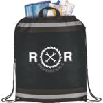 The Eagle Non-Woven Drawstring Bag features an open main compartment with a cinching rope closure, stylish reflective stripes and a convenient carry handle.