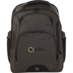 The elleven™ Rutter TSA 17 inch Computer Backpack incorporates executive looks with modern technological and travel needs. Fits most 1 inch laptops in a padded rear computer compartment while the main compartment includes a file divider and dedicated iPad®/tablet pocket. Zippered top nylex-lined pocket fits your iPhone® or other smartphone. Special RFID pocket on the front helps prevent identity theft by shielding your credit card and passport. Additional front pocket includes deluxe organization while the zippered side pockets are perfect for your cables or portable power and the dual mesh side pockets for your water bottle. There is even a hidden mesh pocket on the backpack strap for your phone or ID. Includes a padded neoprene handle, back and adjustable shoulder straps. A trolley handle attachment is integrated into the back panel. Free run charges for embroidery up to 7500 stitches. Disclaimer: There may be minor variations in color of the actual product.