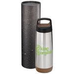Valhalla Copper Vacuum Insulated Bottle 20oz features a skid-proof cork look bottom and handling loop design, your next promotion will be sure to stand out. Durable, double-wall stainless steel vacuum construction with copper insulation, which allows your cold beverage to stay cold for 48 hours and hot for at least 12 hours. The construction also prevents condensation on the outside of the piece. Fits most standard car cup holders. This product is an exclusive design. 20oz. Drinkware is 1626-58. Laser engraving silver Drinkware will result in a subtle, tone on tone decoration