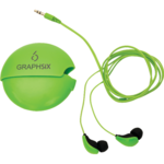 The Glow-In-The-Dark Earbuds with Case are for use with any standard audio device. The round case stores the earbuds with glow in the dark cables provide visibility in the dark. For best glow effect, expose under a direct light. Includes a 3.5mm audio jack and a 40-inch earbud cable.