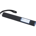 Slim, bright, and magnetic this flashlight has three modes. The first mode is a 4 LED flashlight, the second mode is the 24 LED light, and the third mode is both on at once. Magnetic back for easy storage or for placement against metal surfaces when in use. Push button on/off. Nylon carrying strap. 4 AAA batteries.