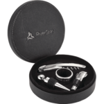 The five piece Modena wine gift set includes a stopper, waiter corkscrew, drip ring and pourer in a fine detailed UltraHyde gift box. This retail inspired gift set is perfect for any gifting occasion.